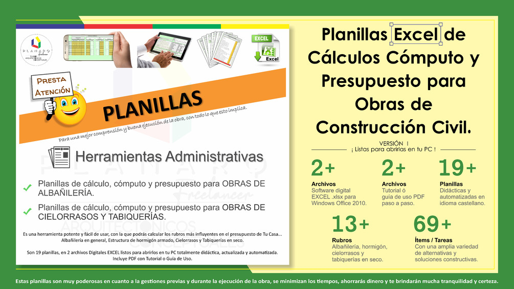 Como ves, éstas planillas son muy poderosas en cuanto a la gestiones previas y durante la ejecución de la obra, se minimizan los tiempos, ahorrarás dinero y te brindarán mucha tranquilidad y certeza.